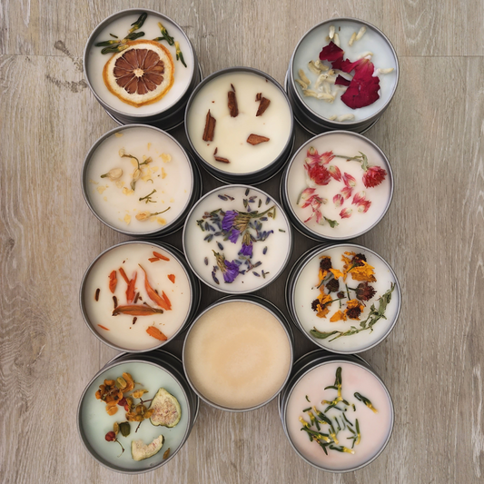 Handpoured, soy blend candles infused with high quality essential fragrance oils and made with cotton/paper wicks for a clean, highly fragrant, long lasting burn. Phthalate free.